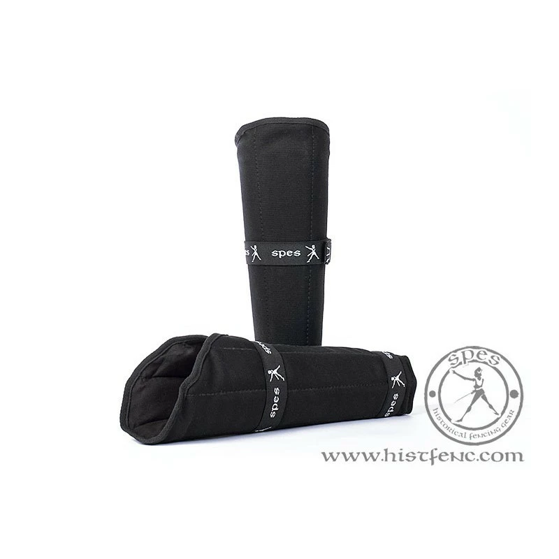 Les protecteurs de mollets aident à réduire la menace de blessure lors des fréquents entraînements historiques d’escrime. Ils sont faits de tissu robuste ainsi que d’inserts en plastique dur. Ils ont été conçus et testés en collaboration avec l’école d’escrime historique “Vectir”.