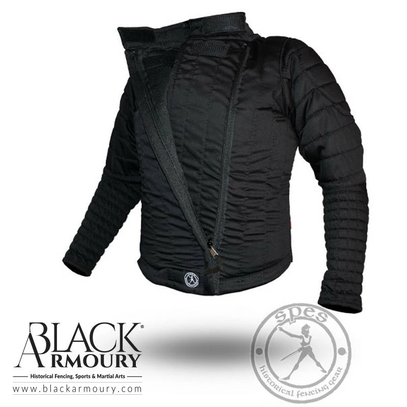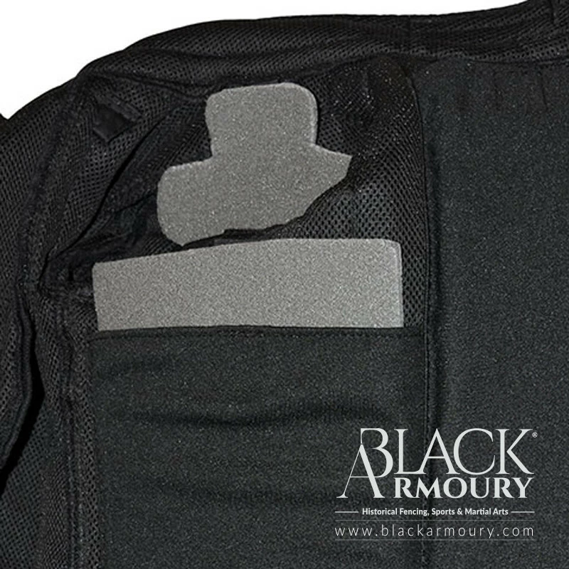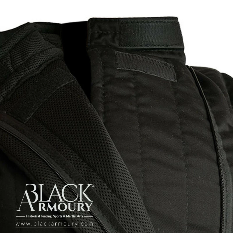Sur les manches, il y a des points d’attache pour ajouter des coudières. Grâce aux poches pour inserts en mousse, le niveau de rembourrage des côtes, des épaules et du torse peut être personnalisé. Cette caractéristique rend cette veste suffisamment polyvalente pour les entraînements légers, ainsi et les combats et tournois plus lourds.