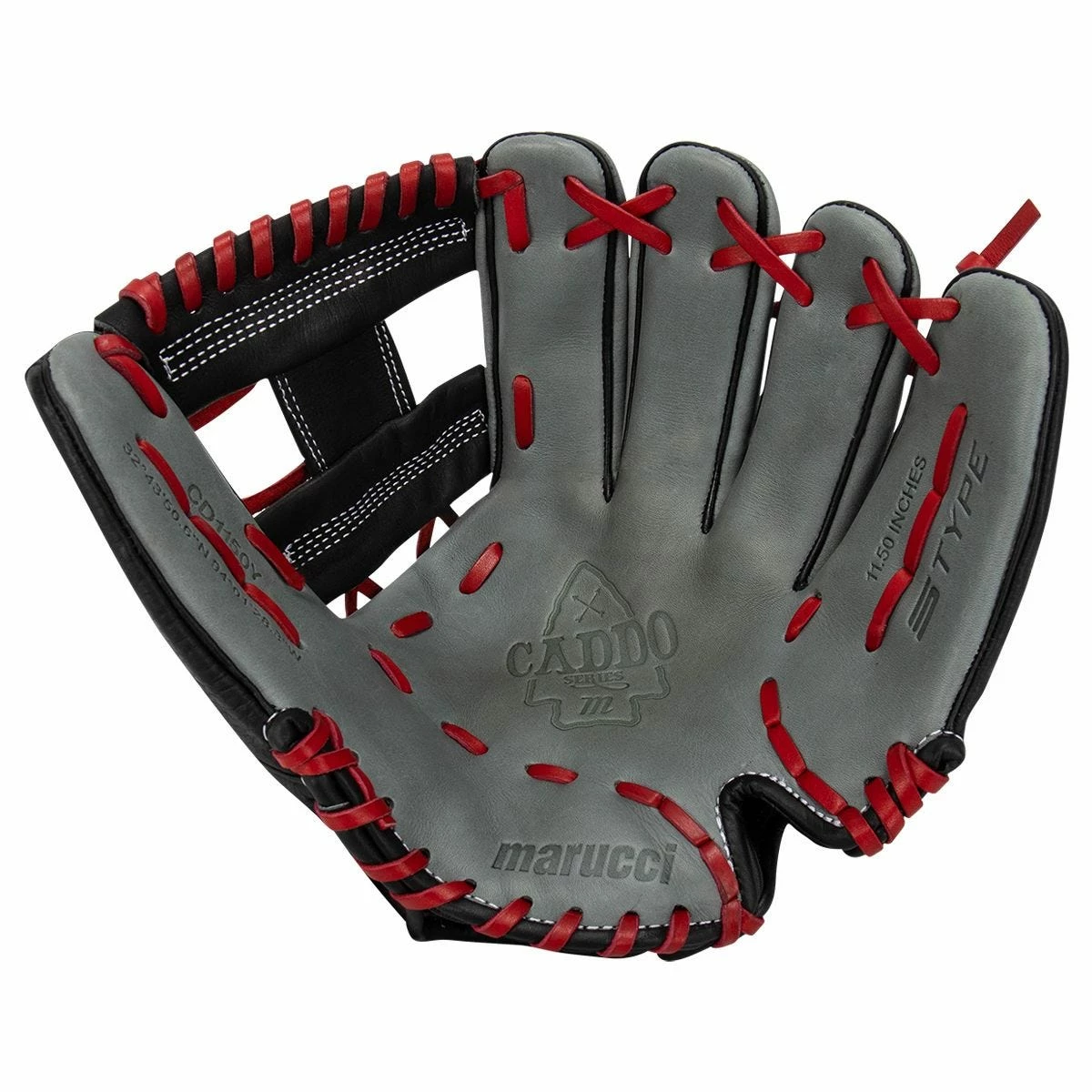 The Marucci Caddo 11.5” Baseball glove has a S Type fit provides a traditional hand stall with adjustable thumb and pinky loops for enhanced fit and security.