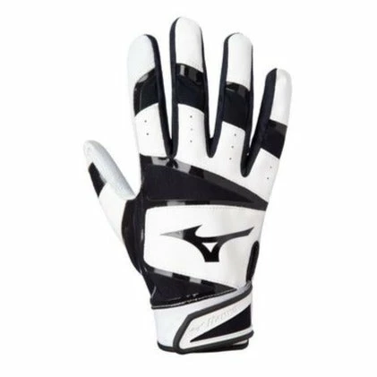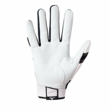 A popular batting glove that is power-packed with premium features. Made with embossed full grain leather palm to give players a combination of a great feel with increased durability. Designed with Mizuno AirMesh for maximum flex and breathability. Our quick adjust wrist tab gives players a secure fit. Made with a neoprene wristband with a PNPâ„¢ (Personalized Number Plate) to give players a customization option.