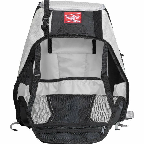 This team backpack is the perfect bag to carry your equipment to big game. The backpack holds two bats and the main compartment converts to a game time shelf for easy access to your gear. This backpack also features a external clip for glove or helmet storage.
