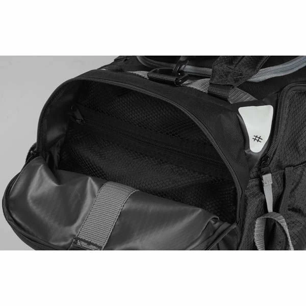 This Hybrid players bag can be used as a backpack or a duffle bag. The bag holds 2 bats and features a Velcro® strip for external batting glove storage as well as a ventilated shoe pocket. The tarpaulin bottom makes this a very easy bag to clean.