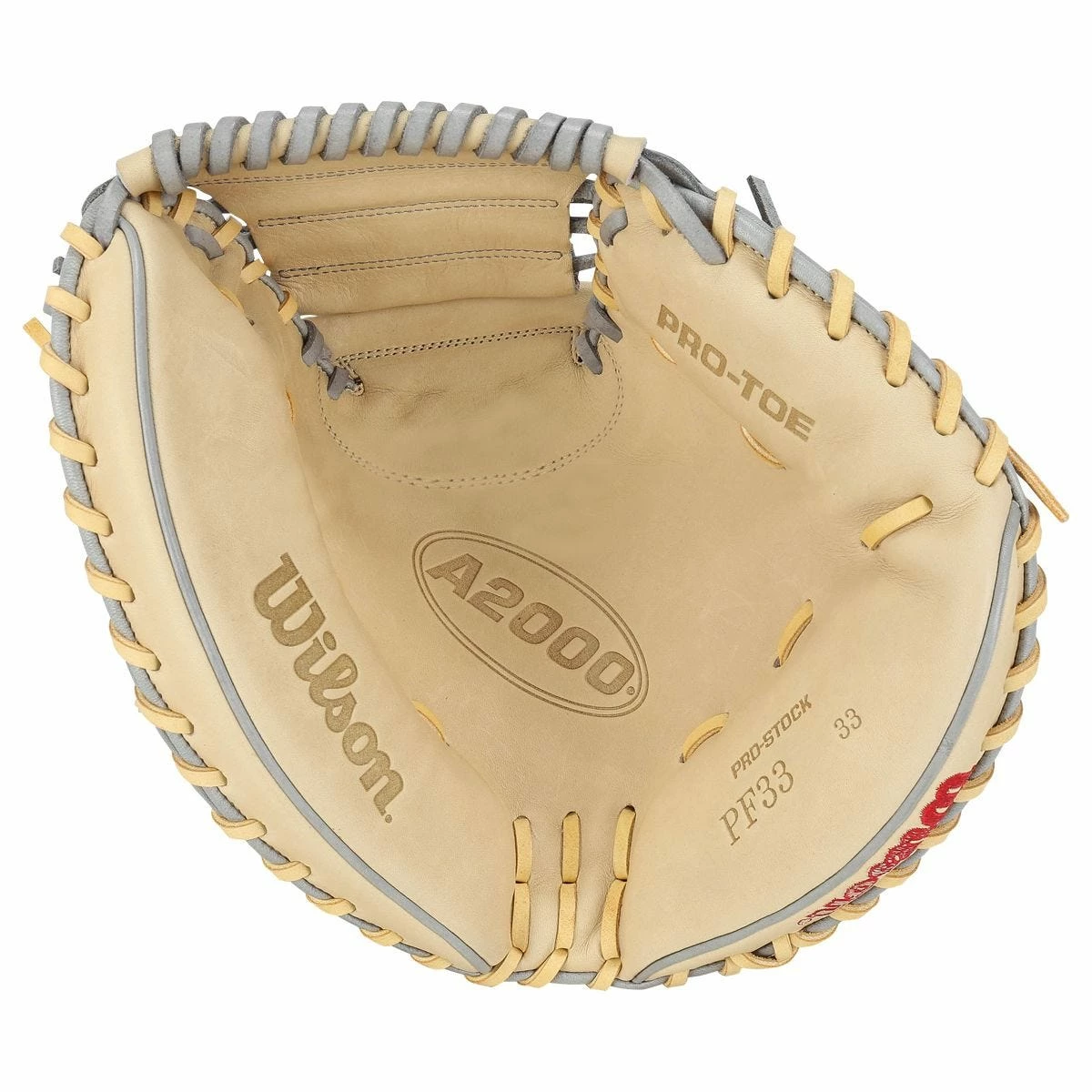 Introducing the 2023 Wilson A2000 PF33 SuperSkin 33” Baseball Catcher’s Mitt. The Wilson A2000 was first introduced in 1957 and has evolved with the game year after year. The A2000 series features durable Pro Stock leather that brings a consistent feel and allows for a detailed break-in process. Another feature Wilson incorporates on their A2000 glove line is Comfort Pro Fit, which is a Comfort Sleeve in the wrist binding. Comfort Pro Fit also includes a Pro Lux leather palm lining that forms to the player’s hand over time. Flat Finger Binding on the A2000 allows the player to comfortably take the field with a finger outside the glove for improved control. The A2000 has Rolled Dual Welting as well, which supports the leather to help a glove keep its shape over time. This A2000 features SuperSkin. Wilson SuperSkin was developed by Master Glove Craftsman Shigeaki Aso. SuperSkin is twice as strong as traditional Pro Stock leather, half the weight, and repels moisture from rain or wet grass to extend the life of your A2000. The classic A2000 keeps getting better, get the newest members of the A2000 family today!